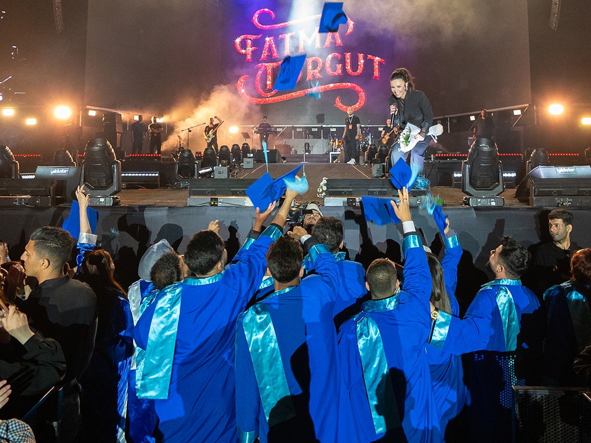 Şarkıcı, mezuniyet töreni sonrası konserine gelen Van Yüzüncü Yıl Üniversitesi İngiliz Dili ve Edebiyatı bölümü öğrencilerine de geri sayım yaparak kep attırdı.