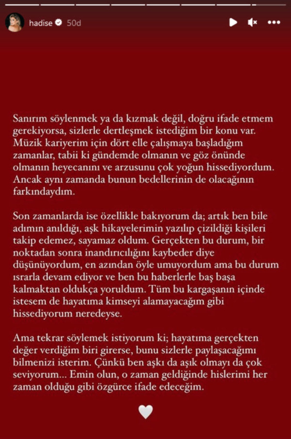 Sosyal medya hesabından dedikoduları yalanlayan Hadise, uzunca bir yazı paylaştı.
