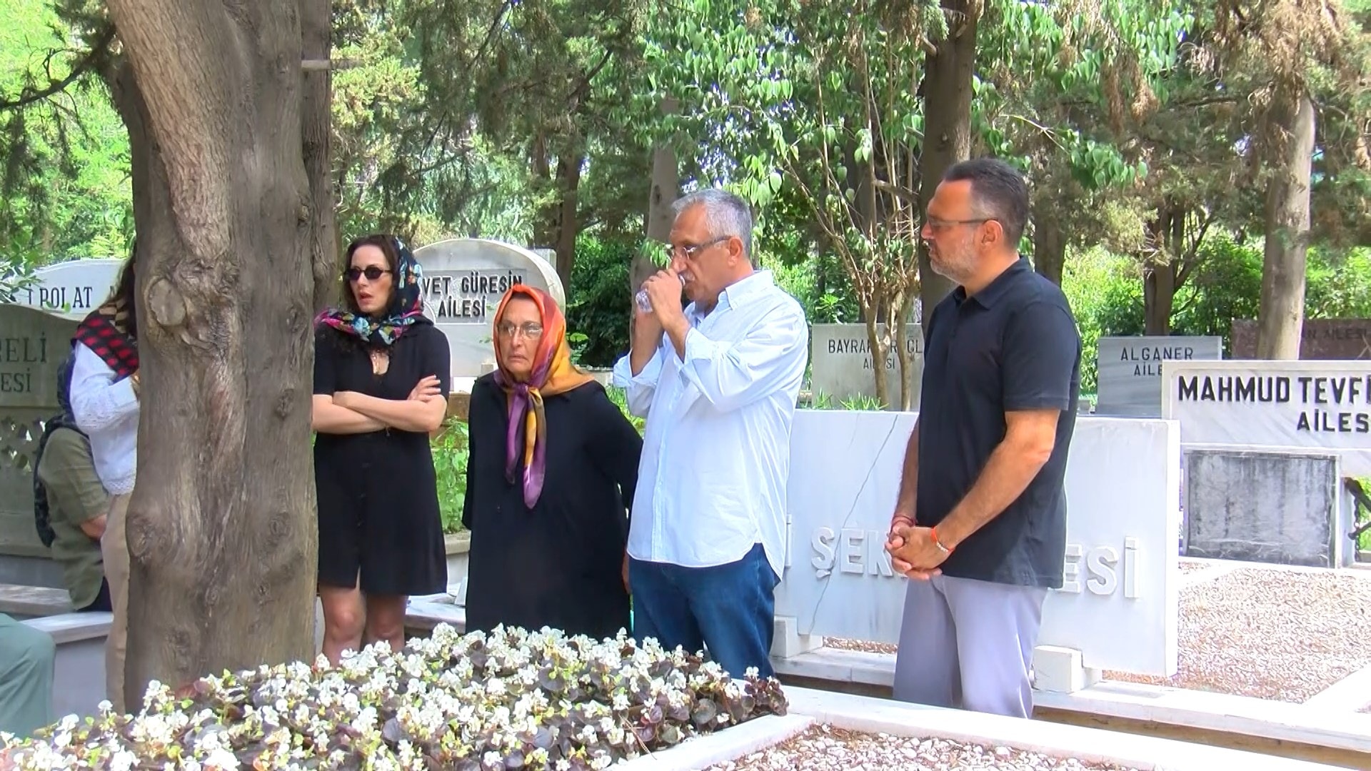 Zincirlikuyu Mezarlığı’ndaki törene Kemal Sunal’ın eşi Gül Sunal, oğlu Ali Sunal, kızı Ezo Sunal, gelini Nazlı Sunal ve sevenleri katıldı.