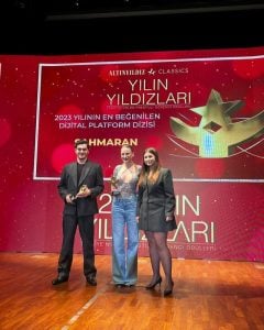 Yakışıklı oyuncu Kıvanç Tatlıtuğ ile Show TV ekranlarında yayınlanan Aile dizisinde rol alan Serenay Sarıkaya, dün akşam düzenlenen Yılın Yıldızları Ödül Töreni’ne katıldı. Işıltılı göğüs dekolteli bir bluzla geceye katılan Sarıkaya, 2023 yılının en beğenilen kadın dizi oyuncusu ödülünü alıp daha sonra da ‘Şahraman’ ile ‘2023 yılının en beğenilen dijital platform dizisi’ ödülünü aldı.