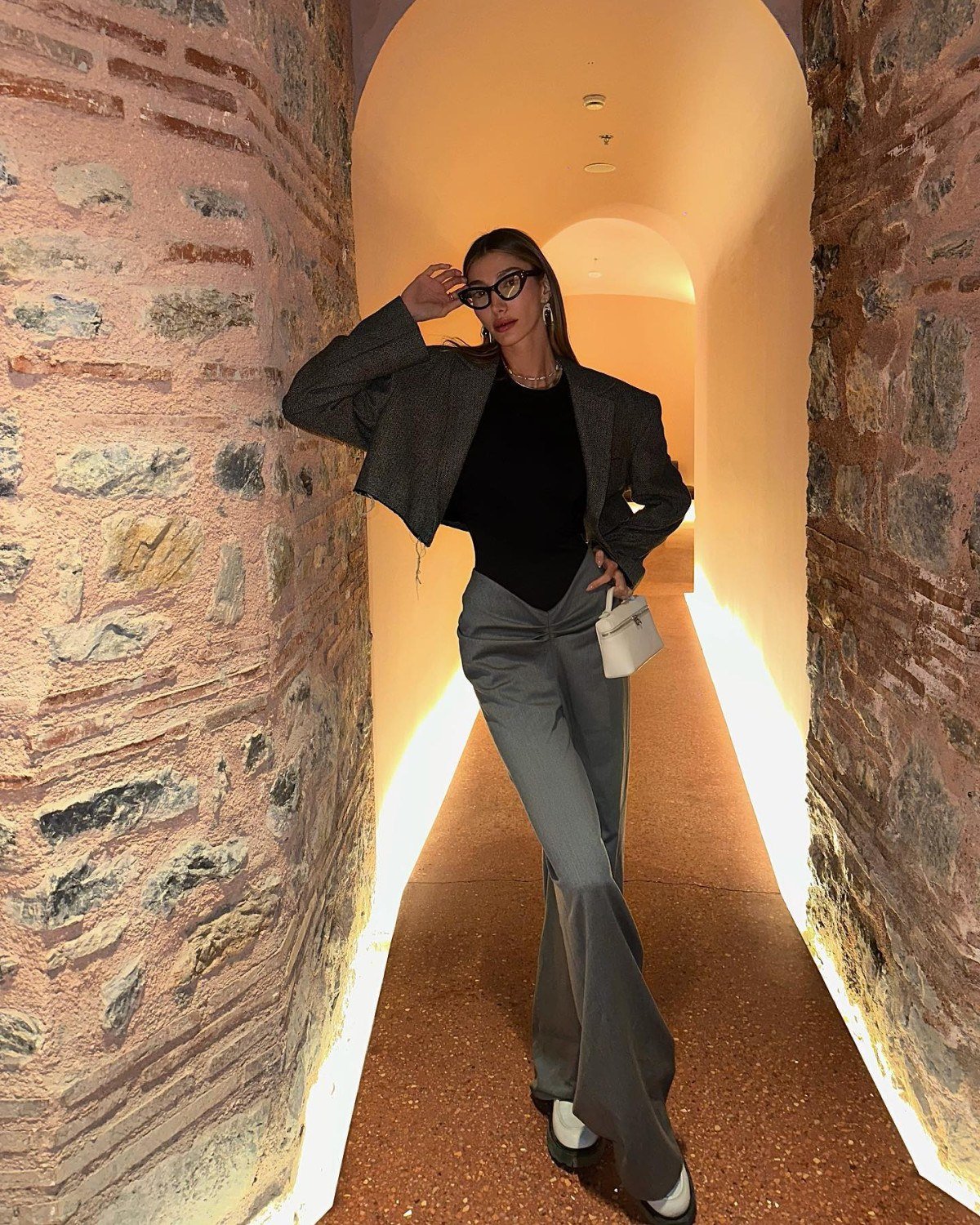 Özel bir davet için özenle seçilmiş kombiniyle dikkatleri üzerine çeken Şevval Şahin, gri arkadan fermuarlı pantolonuyla öne çıktı.