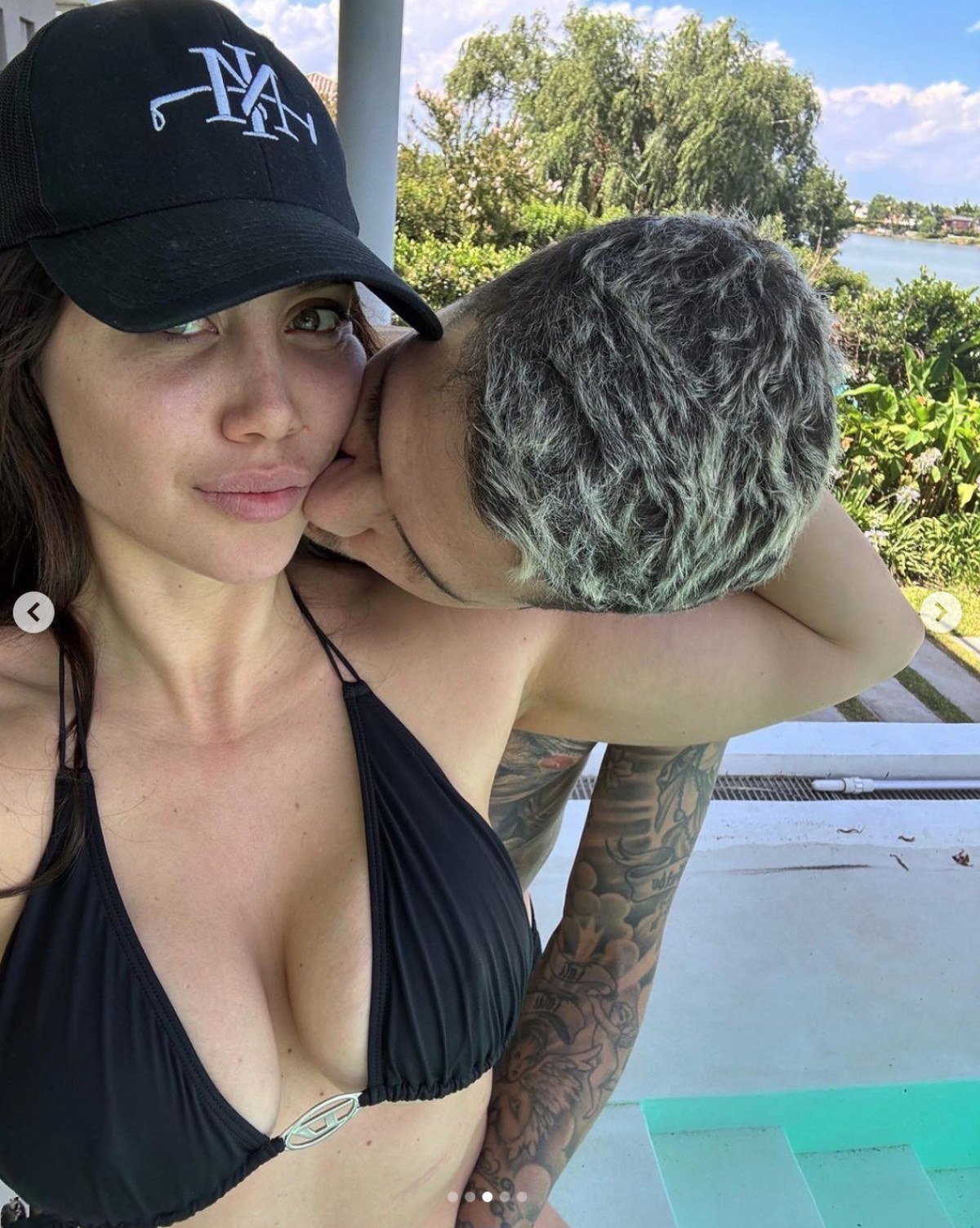 Siyah bikinisiyle poz veren Wanda Nara’yı eşi Icardi öpmelere doyamadı.